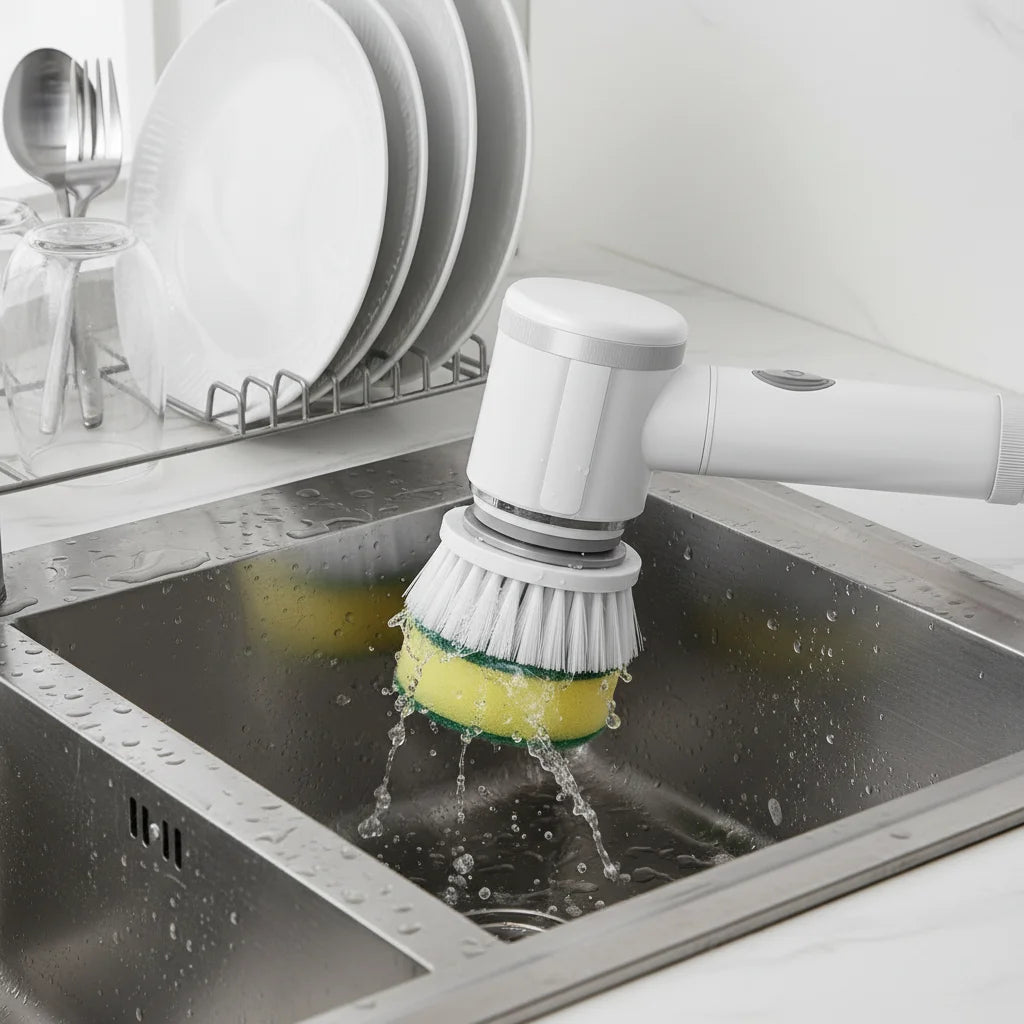 Grease, mildew, or baked-on food don't stand a chance. The robust scrubber heads make light work of stubborn grime, reclaiming your precious time.